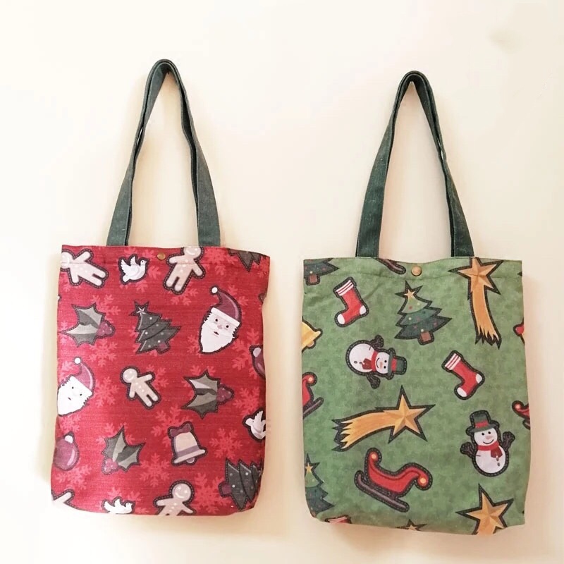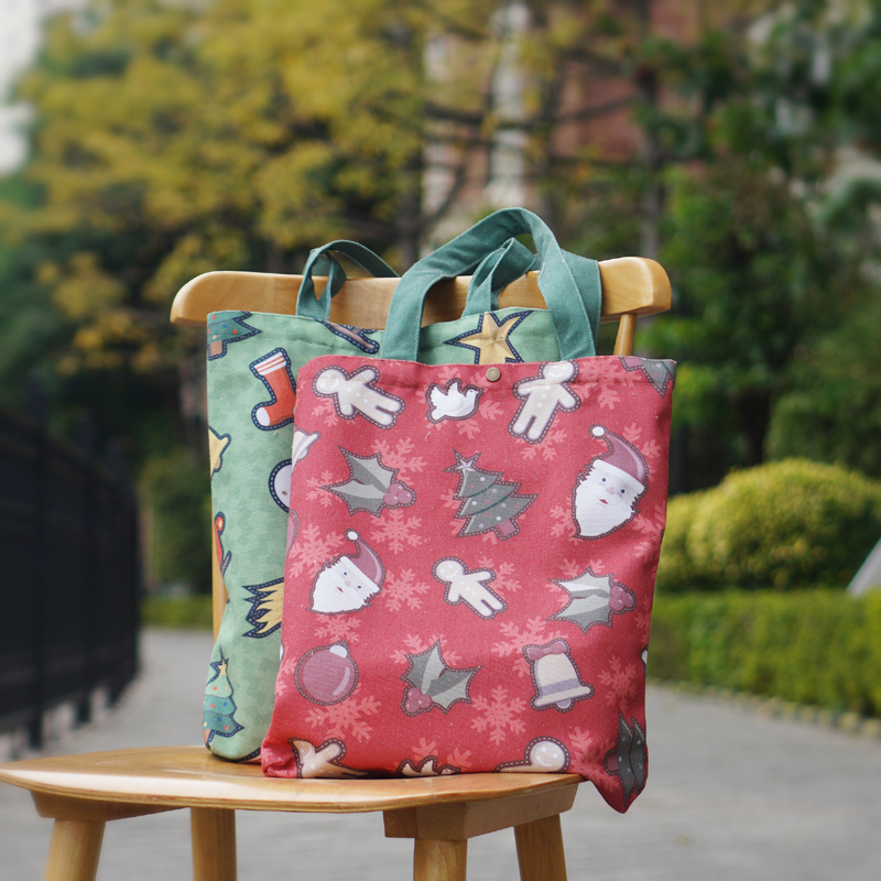 Le Taiye Family Christmas Illustrations Series Canvas Bag Original Design Single Shoulder Bag Carry-on Pure Cotton Environmentally Friendly Shopping Bag