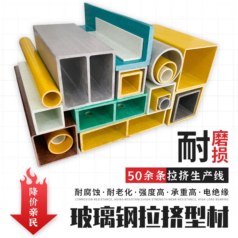 Glass Fiber Pultrusion Profile Square Pipe Round I Steel Sign Pile-Shaped Purlin Solar Power Plant Guard Rail Fence