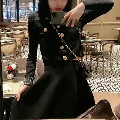 Tired and tired night chivalry Korean commuter golden button black short cardigan 21 autumn and winter New Coat Women