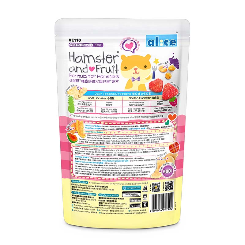 Alice fruit hamster grain golden silk bear food staple food with multiple fruits dried dietary fiber 500g