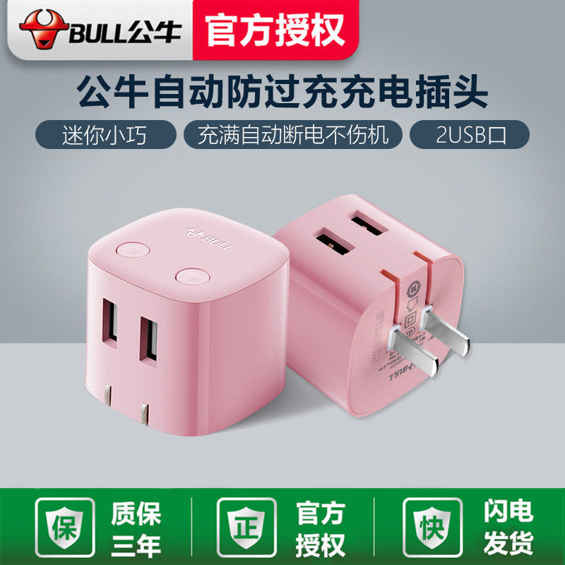 Bull Automatic Power Off Charger Dual USB Anti-Overcharge Head Dual Output Mobile Phone Tablet Fast Charge Charger