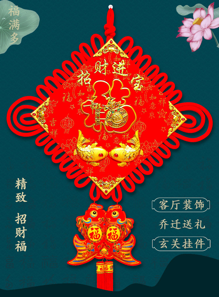 Polychaeen China knot decorated living room big number fu character Xuanguan decoration Qiao relocating New residence Ping An knot Chinese Lunar New Year goods