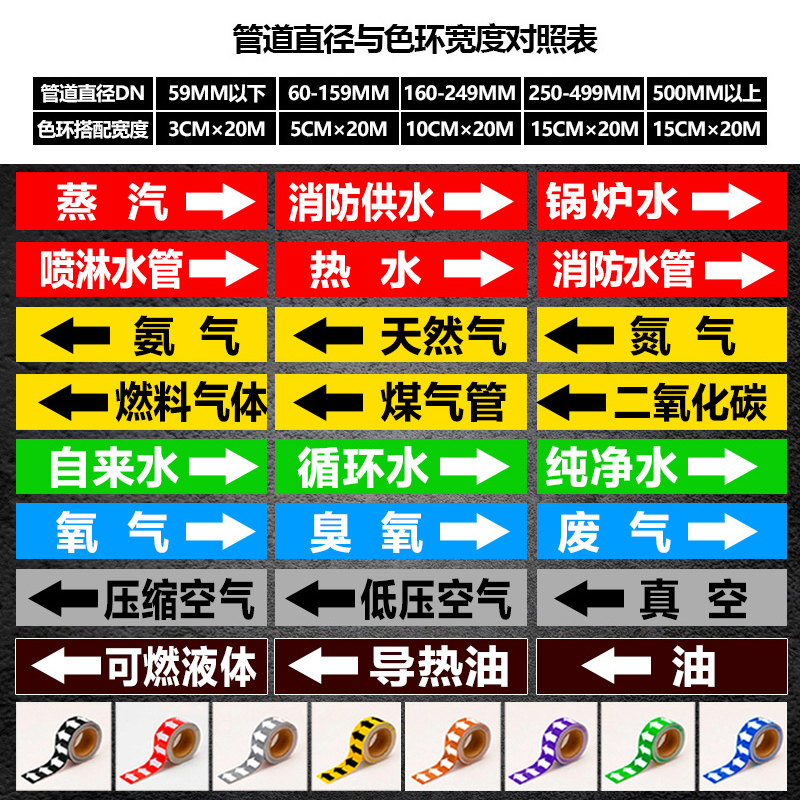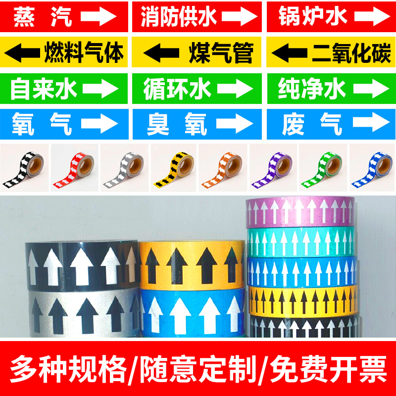 National Standard Reflective Film Piping Logo Post Fire Chemical Flow To Medium Industrial Piping Arrowhead Cold Water Mark Sticker