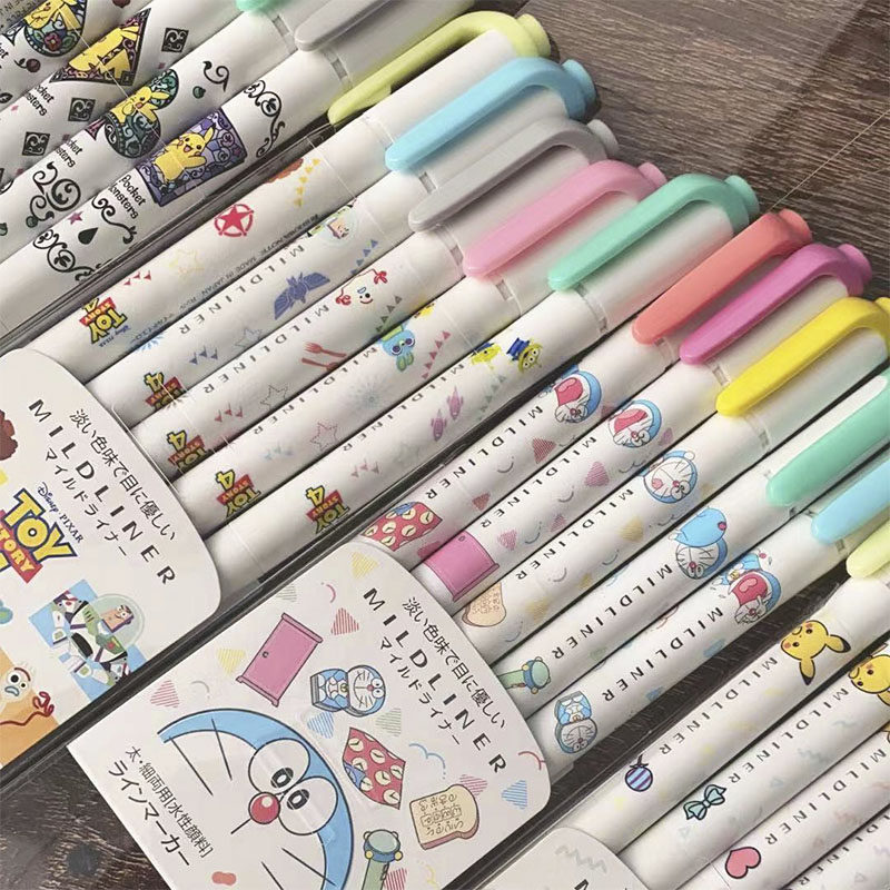 Qualified zebra ZEBRA Pikachu suit fluorescent pen student Doraemon A Dream cartoon Pale Pink Ensemble Focus Marker Pen