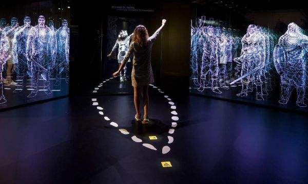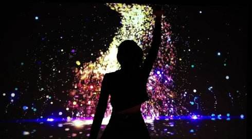 Shake-up People's Motion Pictures Sensory Particles Interact with Large-Screen Man Shadow 3d Body Sense Game