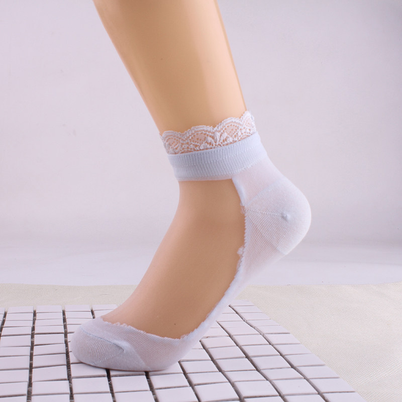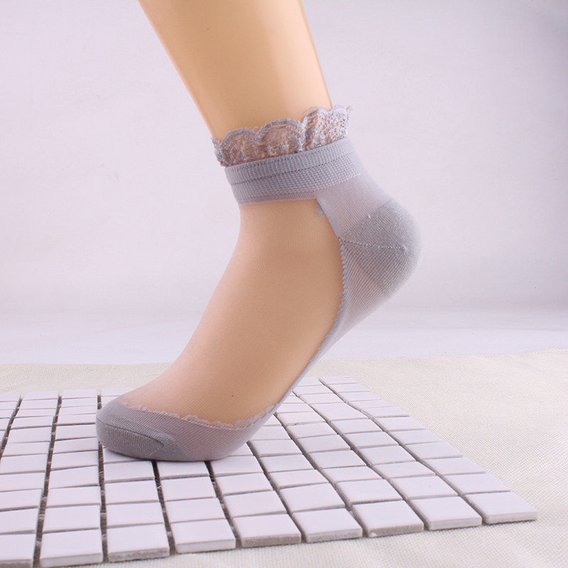 Lace Lace Socks Cotton Bottom Breathable Non-slip Crystal Short Socks Black Fiberglass Socks Transparent Princess Socks Short Stocking Socks