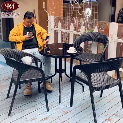 Outdoor table and chair Courtyard garden balcony chair imitation rattan chair three-piece combination leisure terrace outdoor table and chair