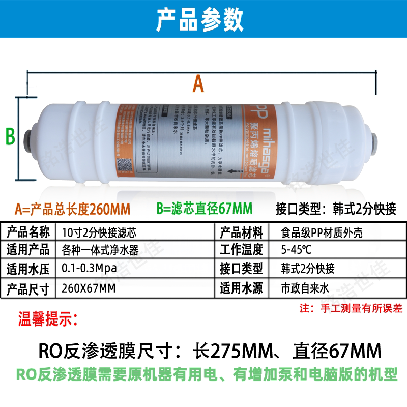 Minghao Shijia water purifier filter element 10 inch universal household filter water dispenser PP activated carbon five-stage set filter element