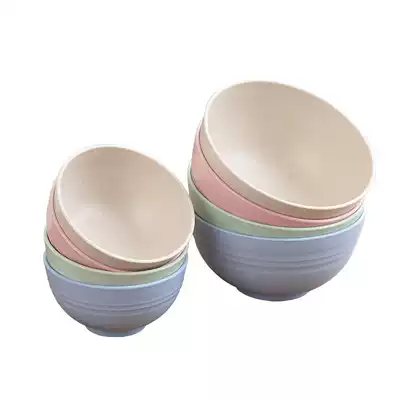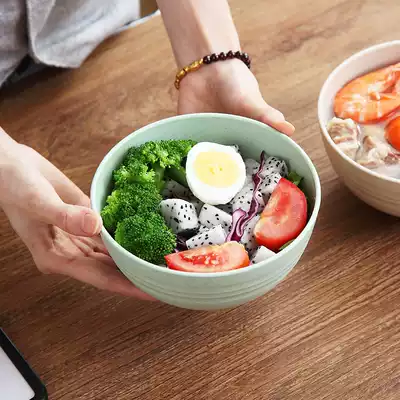 Wheat straw tableware Japanese eating bowl home Creative Anti-fall children adult large rice bowl soup bowl set