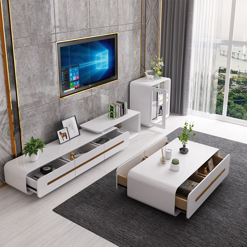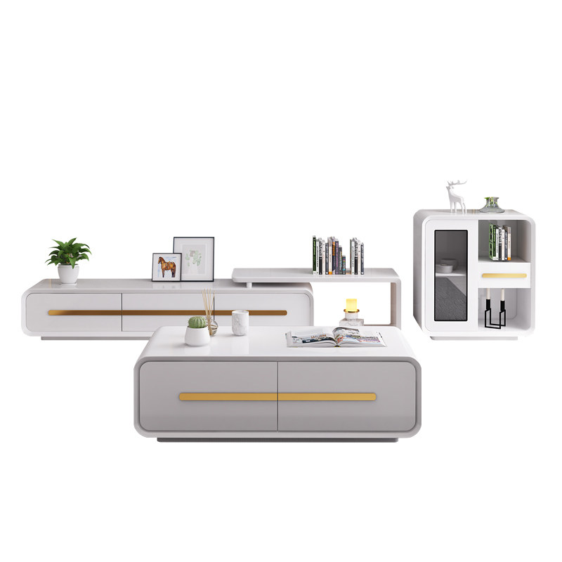 Modern minimalist coffee table TV cabinet combination multifunctional telescopic floor cabinet small apartment living room baking paint furniture tea table table