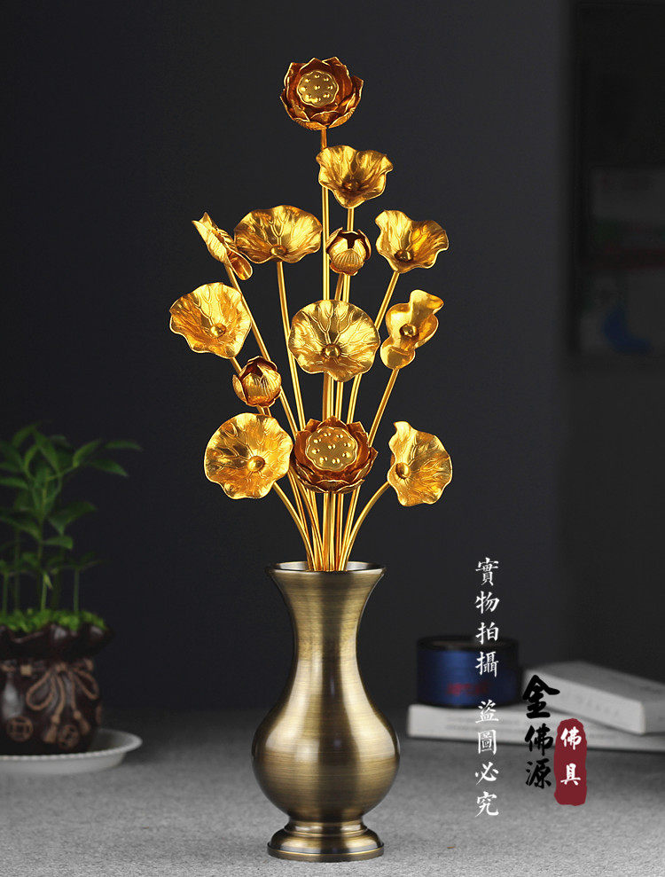 Buddha Statue of the Golden Lotus Guanyin lotus Guanyu Guanyan Guan Gong Guan Gong Gonggong Por Buddhist Hall Swaying Pieces of Buddha Imitation Ancient Bronze Bottle