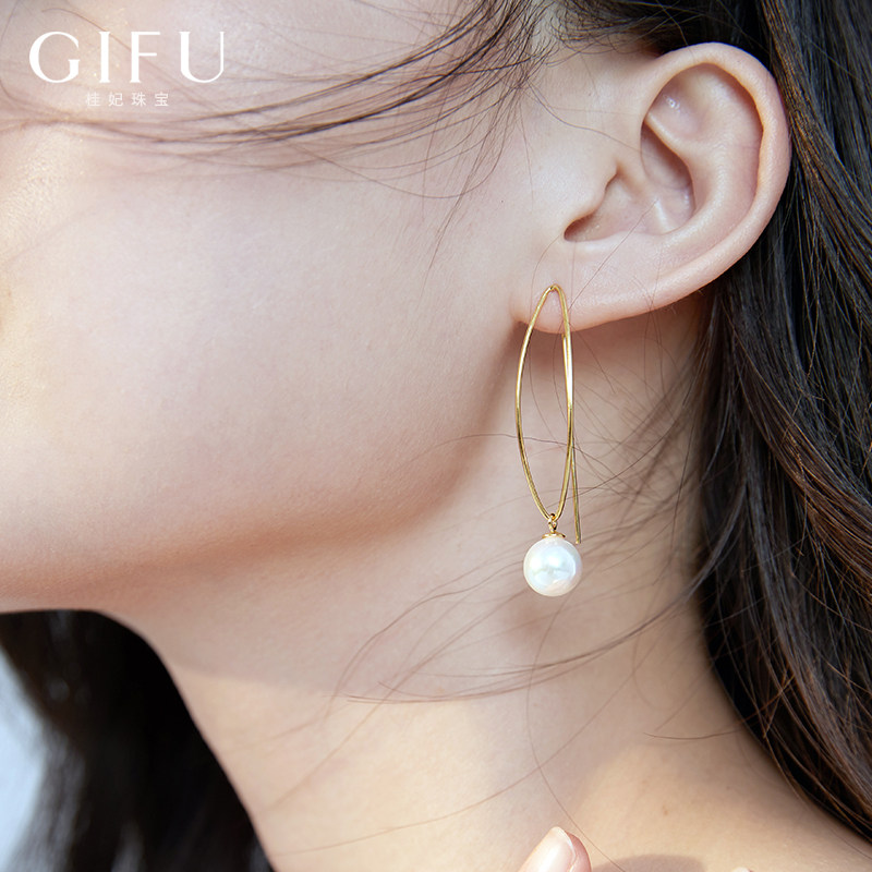GIFU high-end earrings female sterling silver French retro earrings long version imitation pearl earrings earrings ear hooks earrings