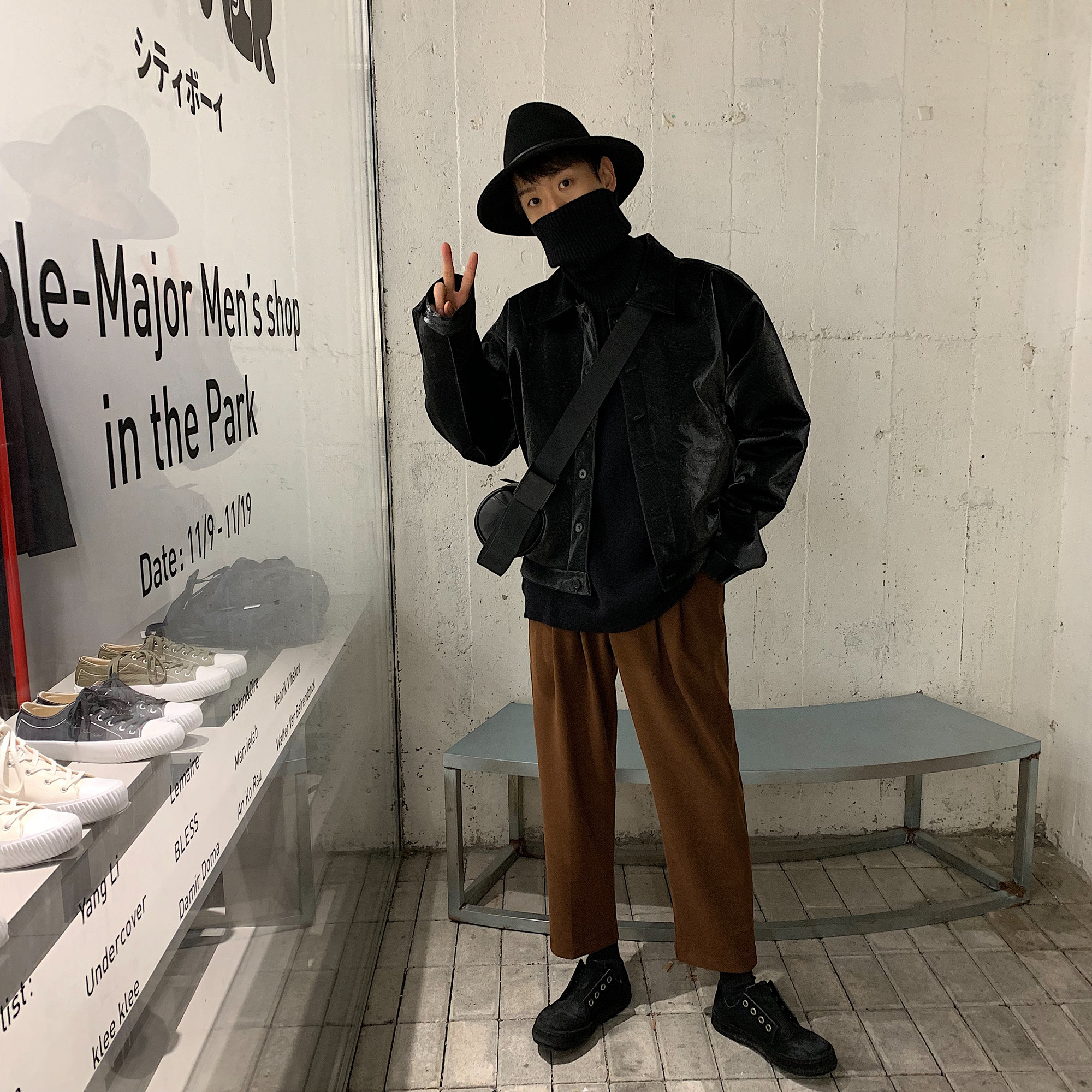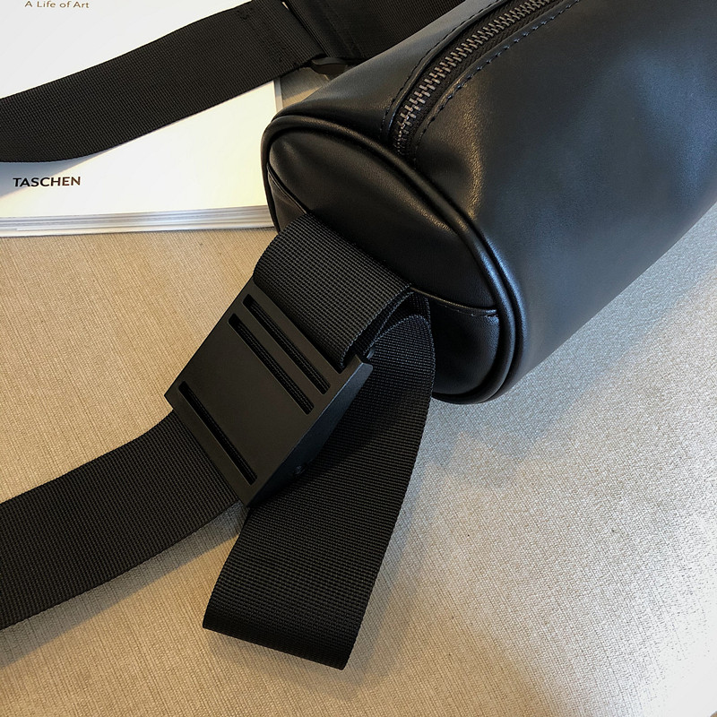 Attitude niche design sense Black leather crossbody bucket bag Korean version ins net red shoulder bag men's armpit bag