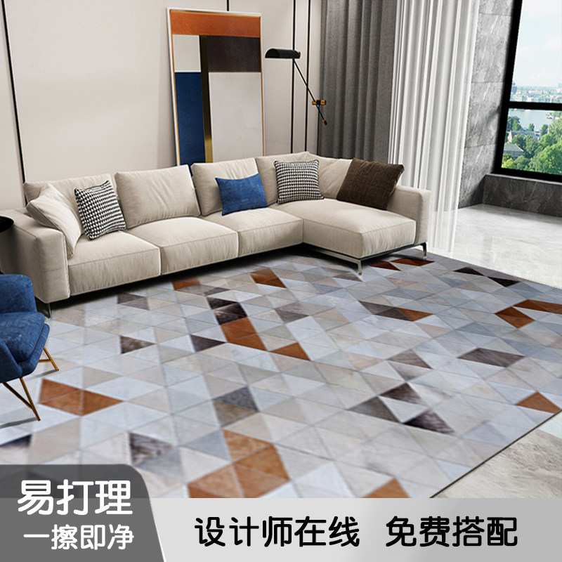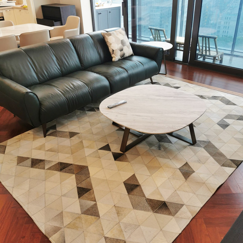 Light luxury living room milk cowhide stitching carpet bedroom bedside blanket gray disposable coffee table floor mat leather cushion