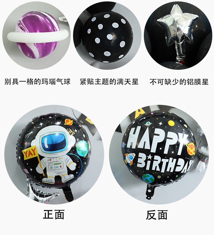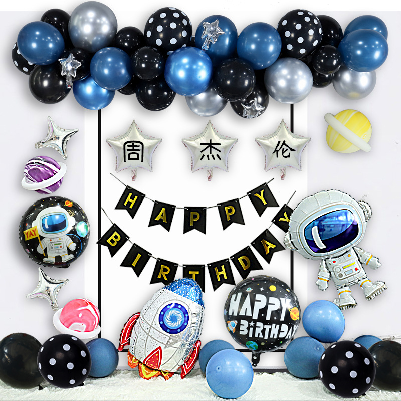 Space Themed Birthday Arrangement Children Party Decoration Suit Astronauts Starry Sky Rocket Aluminum Film Balloon Package