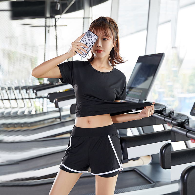 Yoga clothes women loose large size quick-drying thin short-sleeved top summer net celebrity fashion fitness sports running suit