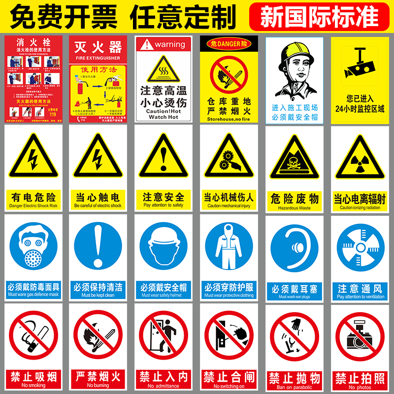 Safety sign shop no smoking construction site warning sign beware of warning sign board fire hydrant sticker strictly prohibit fireworks with electric danger electric shock warehouse prompt sticker custom brand