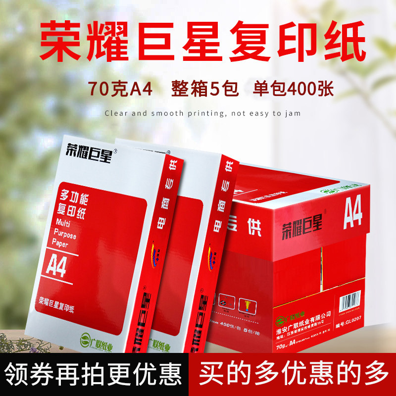 Honor Superstar A4 Copy Paper 70g FCL Wholesale A4 Paper Printing Paper White Paper 70 g Single Pack 400 Sheets of Scratch Paper A Box of 5 Packs of Office Supplies Paper