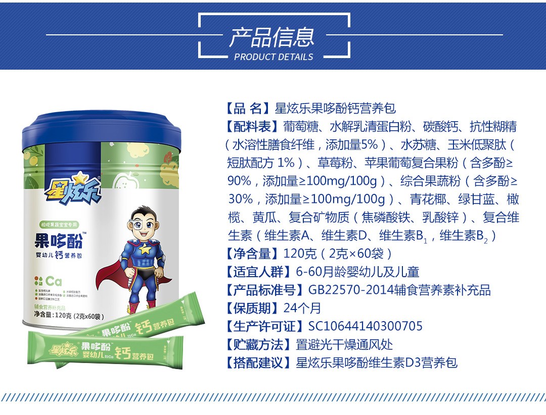 Star Dazzling Calcium Nutrient Packs Infant Calcium Iron Zinc Iron Zinc vitamin supplements Fruit Doxine Fortified Calcium 21 years of production