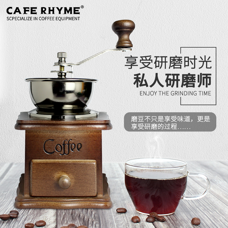 CAFE RHYME Hand CrankEd Bean Grinder Home Coffee Bean Grinder Manual Coffee Machine Mill Antique Wood
