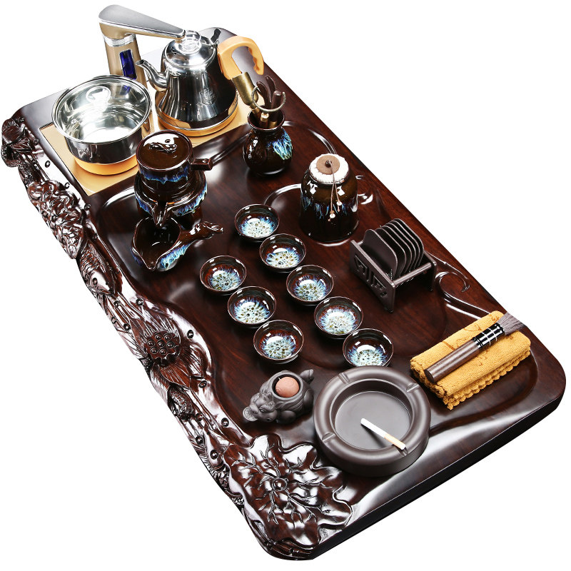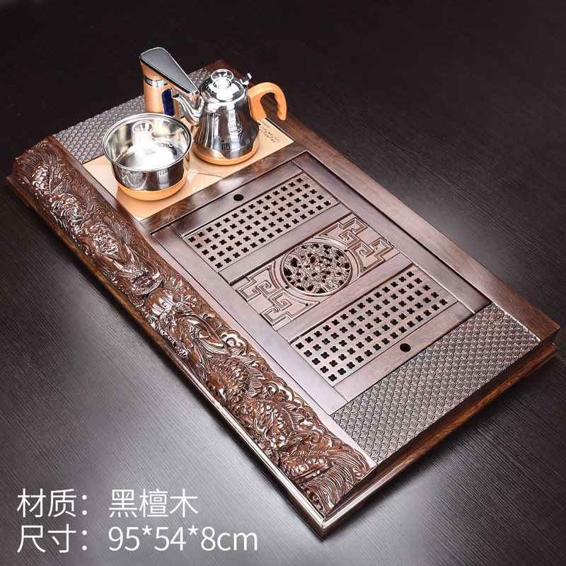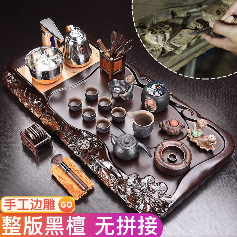 Hui Yao Whole Side Carved Black Sandalwood Solid Wood Tea Tray Ceramic Purple Sand Kongfu Tea Furniture Suit Home Fully Automatic Electric Heating Stove