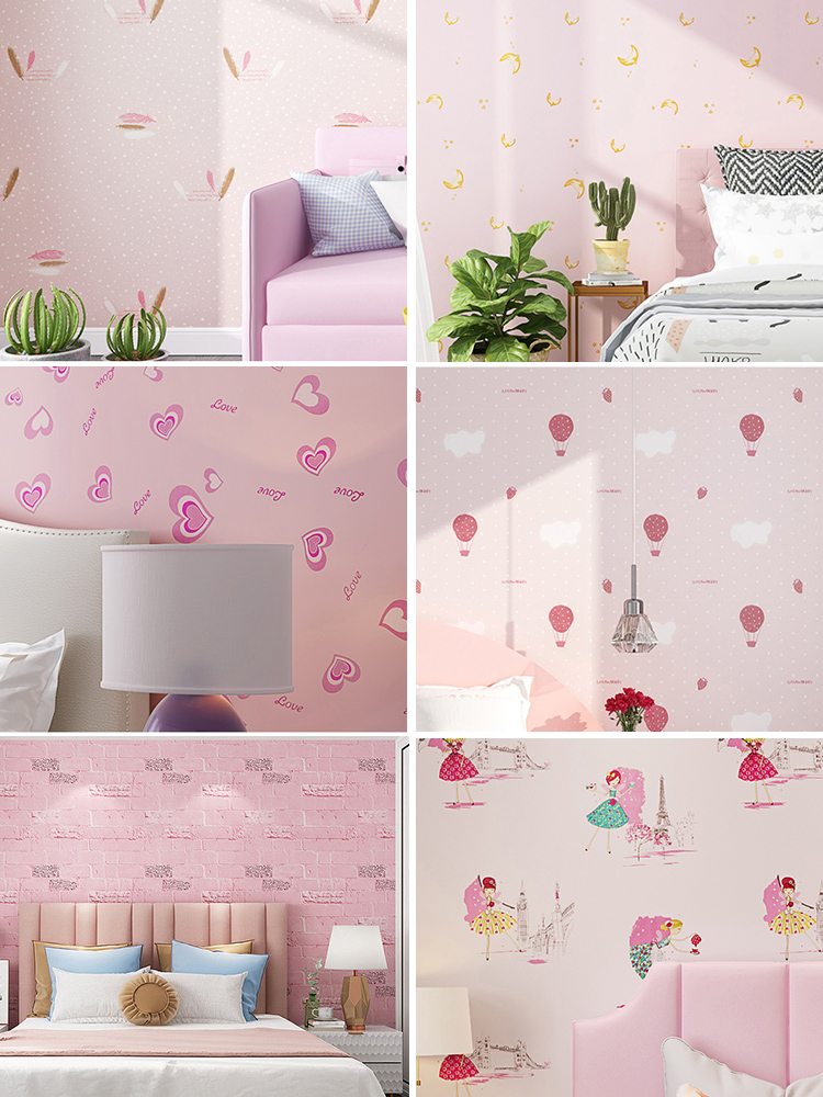 Wallpaper self-adhesive bedroom girl net pink wallpaper waterproof scrubble desktop wardrobe sub furniture renovation sticker