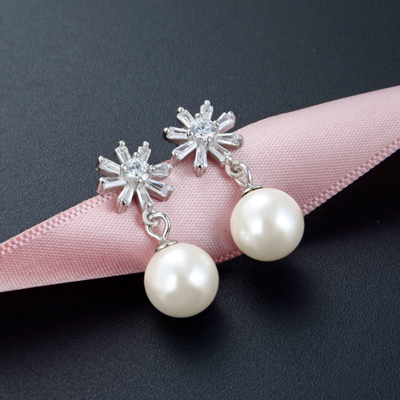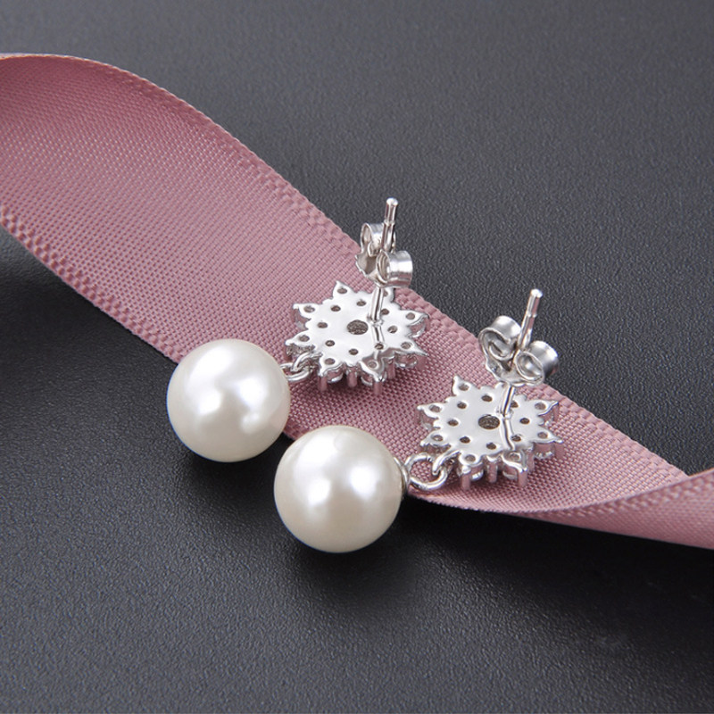 Snowflake white pearl earnail in the shape of a rice-shaped white pearl earnail