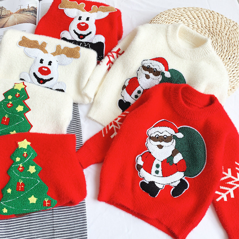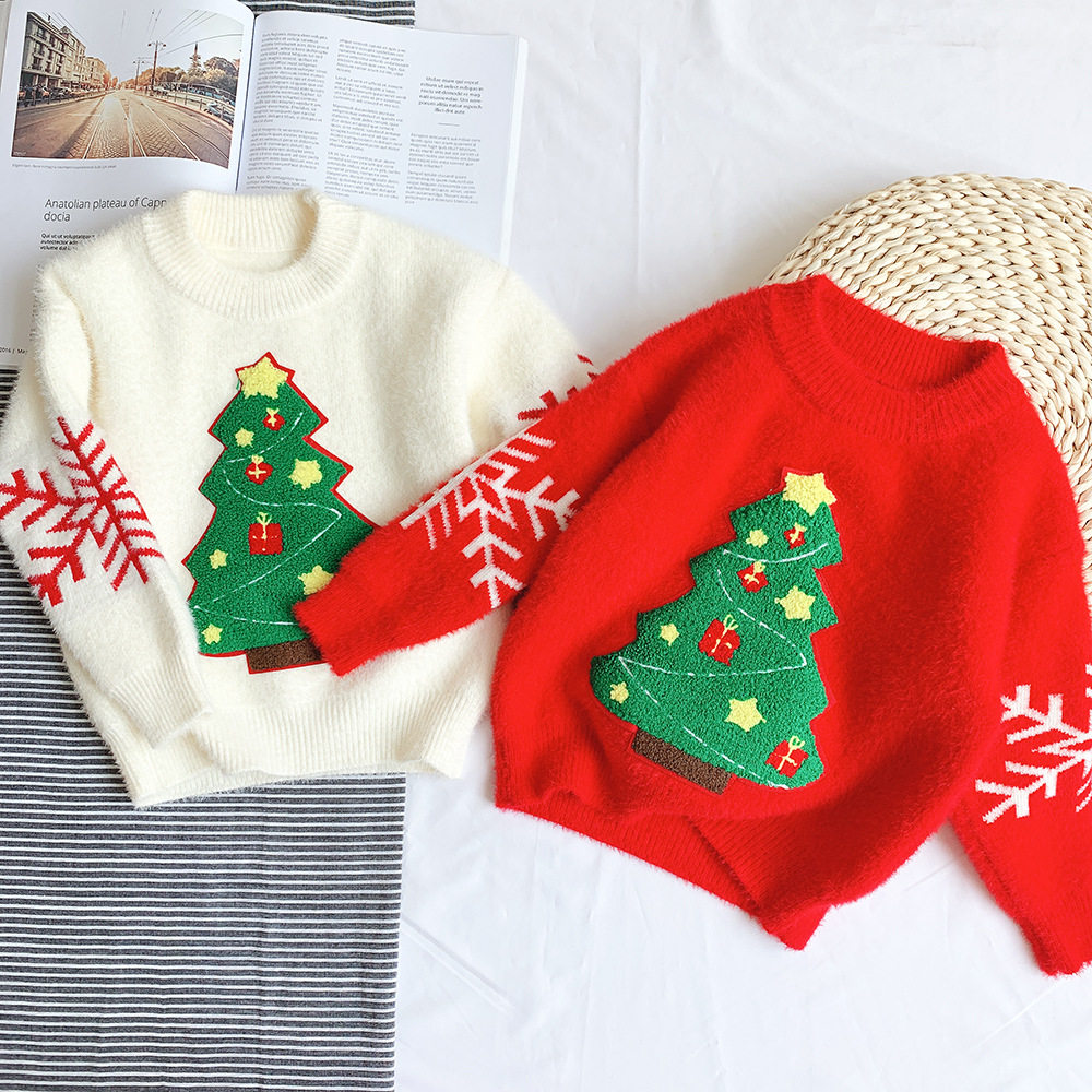Men's and women's Children's Christmas Tree Christmas sweater Mink sweater Red New Year's clothing Pullover