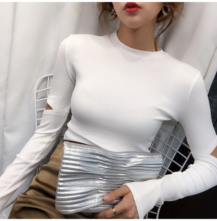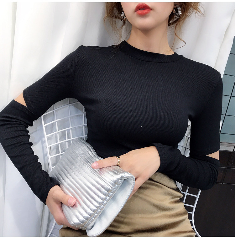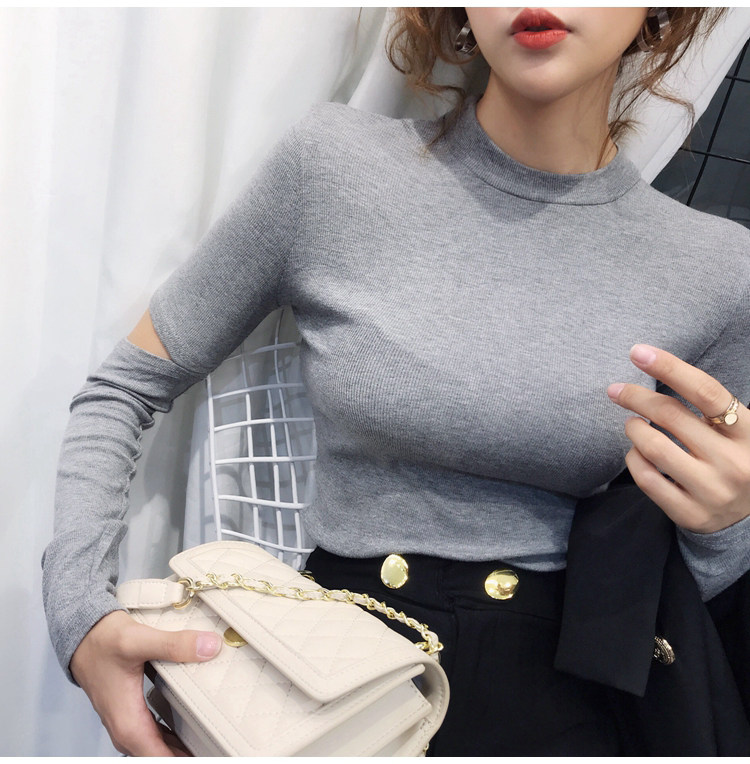 Half-height collar bottom-shirt woman inside lap 2019 autumn and winter new foreign pie jacket sleeves cut long sleeve T-shirt tide