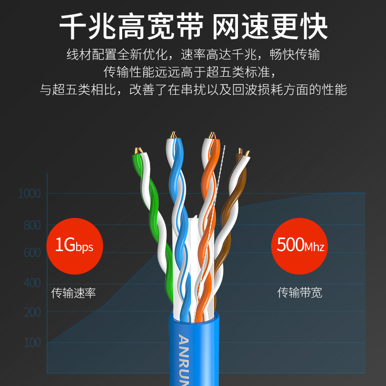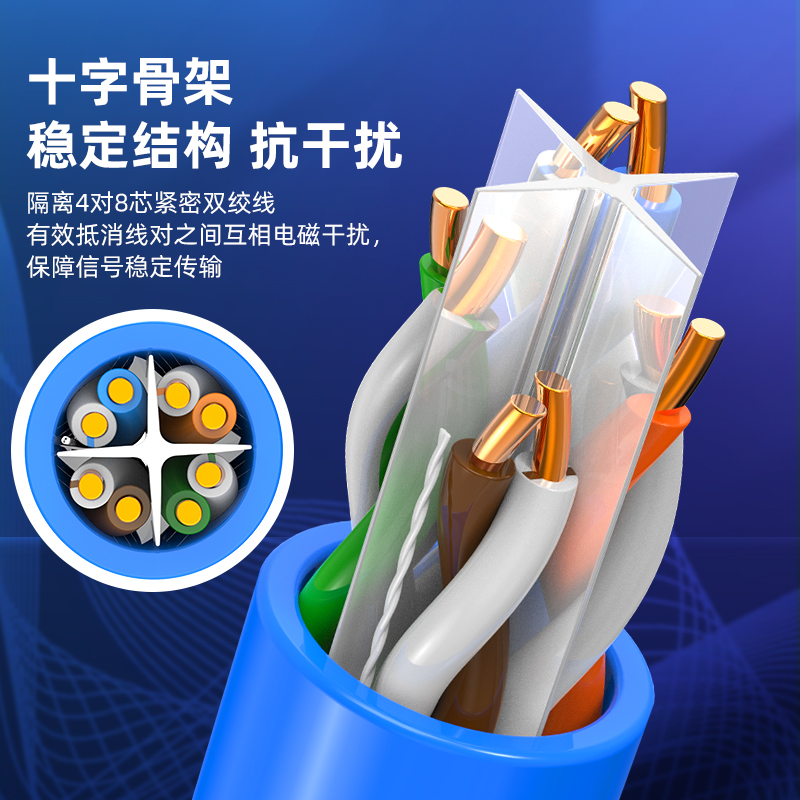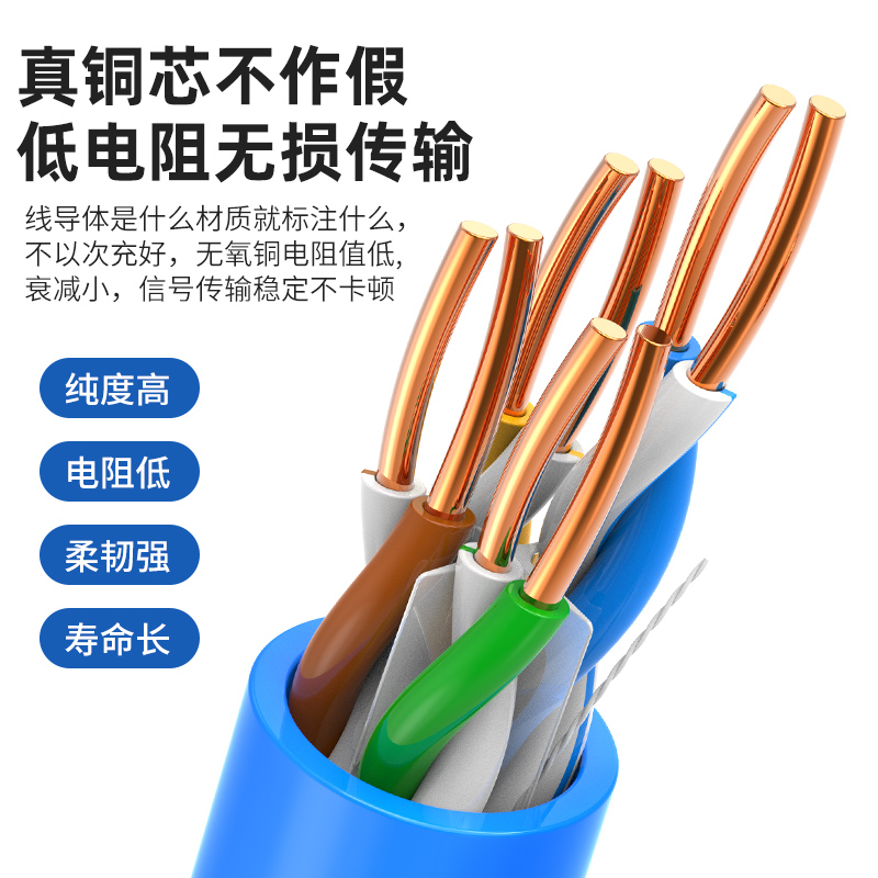 The national standard pure copper six category of mesh cable gigabit oxygen - free copper cat6 household POE monitored the detection network route 300 meters