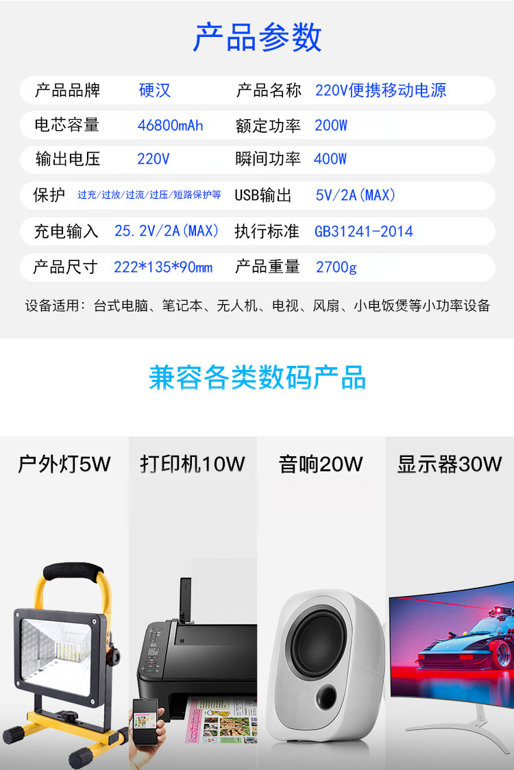 Outdoor 220V mobile power portable large capacity RV camping high power household emergency backup lithium battery