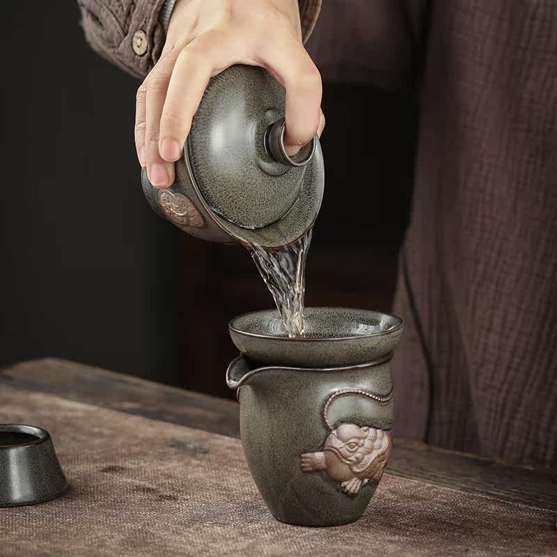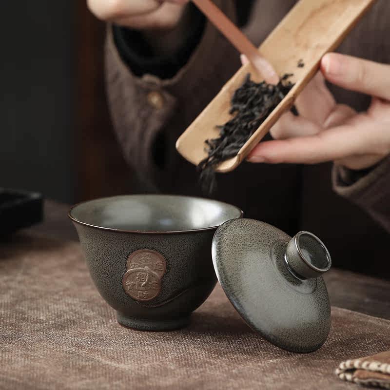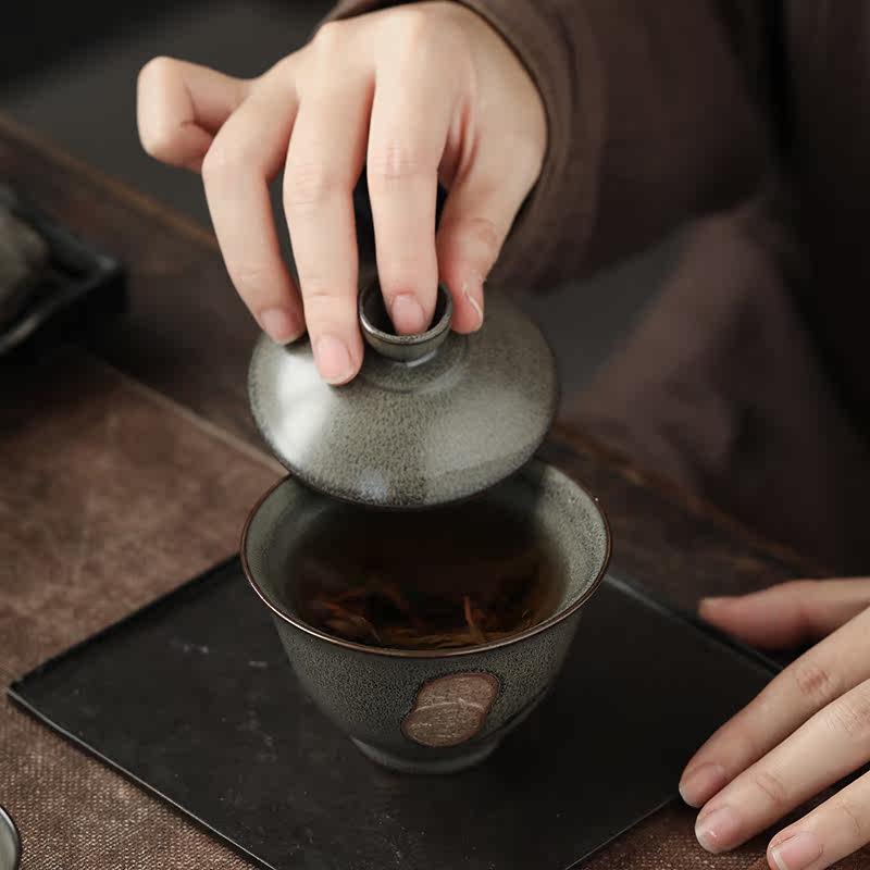 Ink Palate Tea Tail glaze Three-only cover Bowl Cup Big ceramic Home Kung Fu Tea tea Tea Bowl Pure handmade Tea Bowl to Tea Bowl