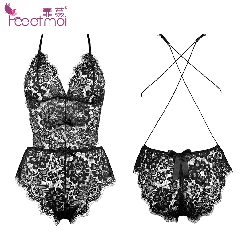 The admiring eyelash lace is dark and the crotch is open to the body.
