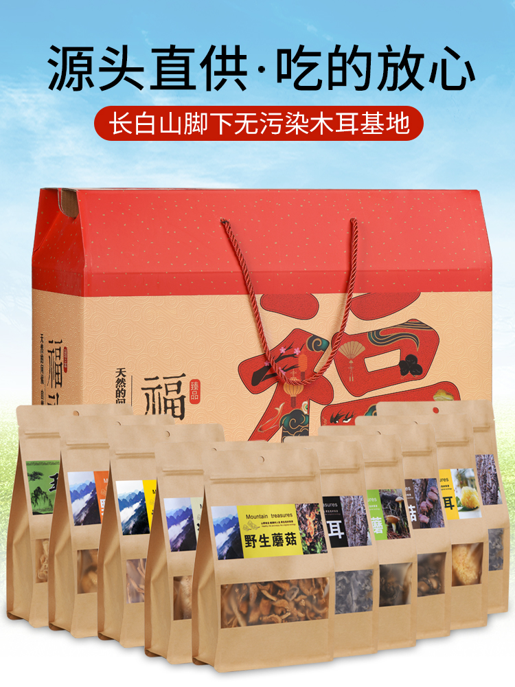 Northeast native specialties mountain rare mushroom gift box black fungus mushroom lion's head mushroom dried goods gift gift