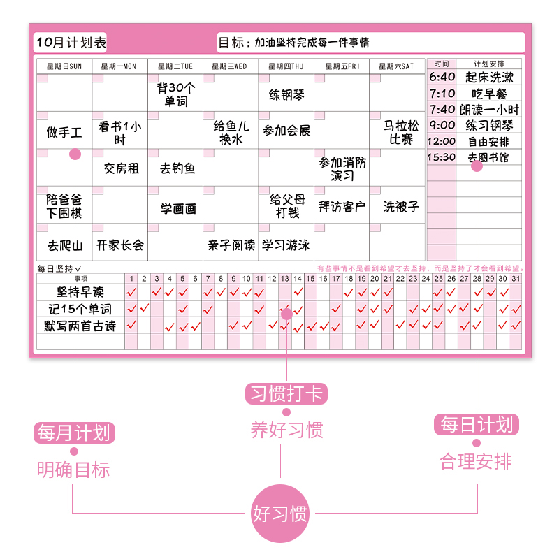 2021 Rewritable monthly schedule Working time schedule Task completion Punch-in record form Learning self-discipline wall sticker