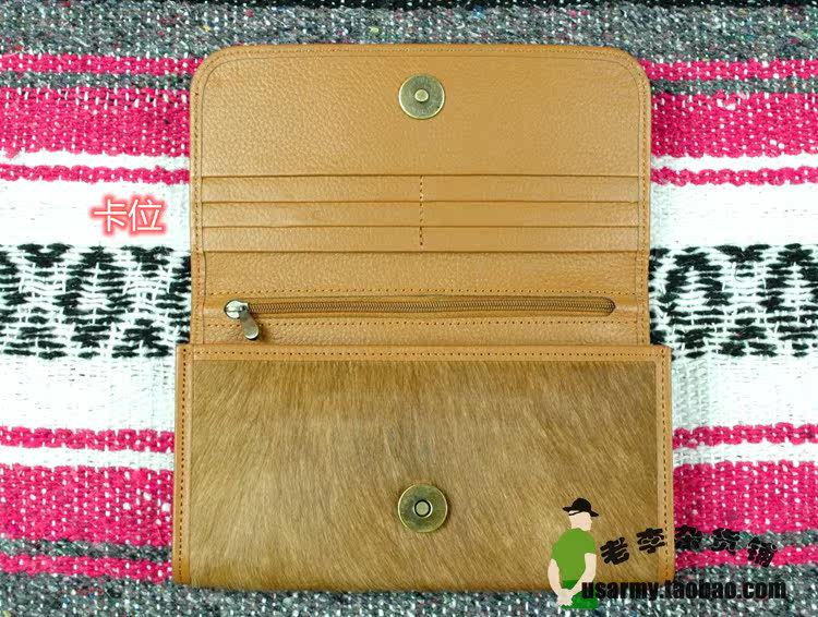 (Beauty Edition) American Luxury Western Style Yellow White Flowers Bull Leather Fur Integrated Long Version Flip Wallet Wallet Money Clip
