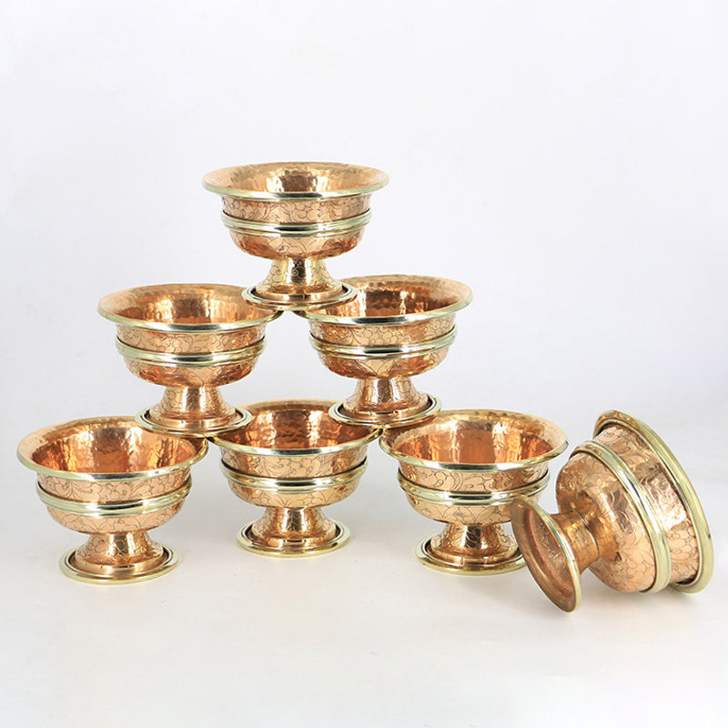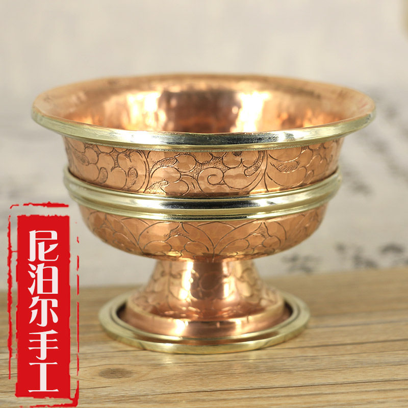 Pure copper water supply bowl Nepal handmade carved flowers for water glass for the Buddha's front water for a glass of water for a holy water glass