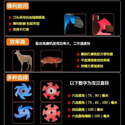 Angle grinder planing wood blade Angle grinder wood milling cutter root carving six-tooth tea plate embryo leveling grinding hexagon