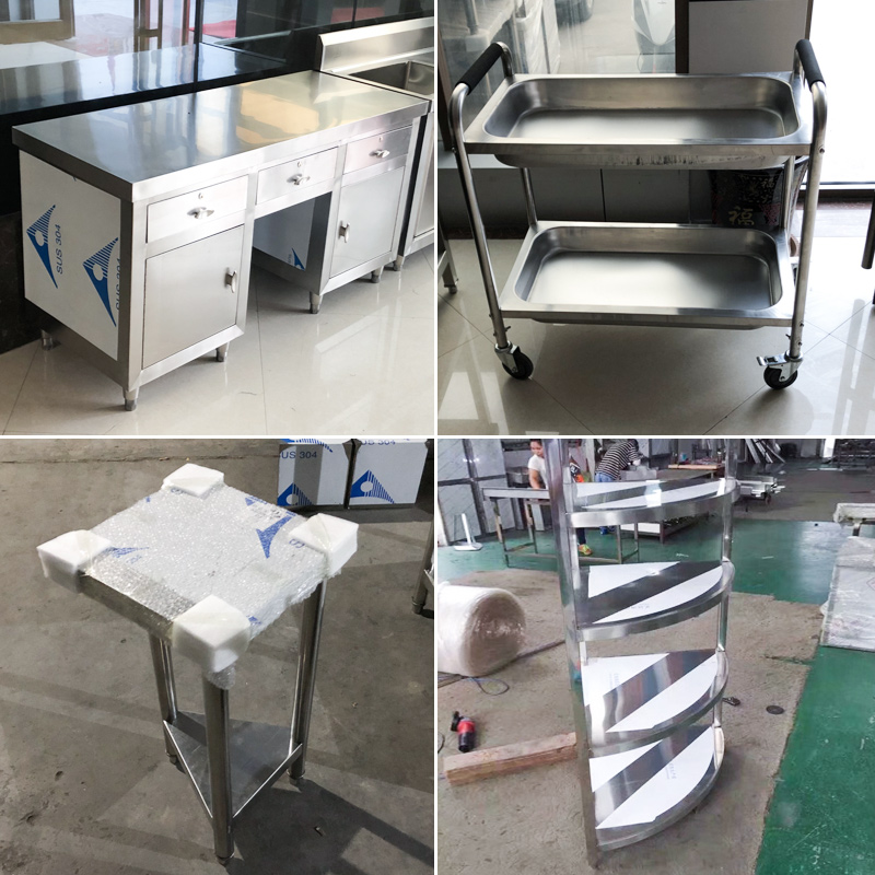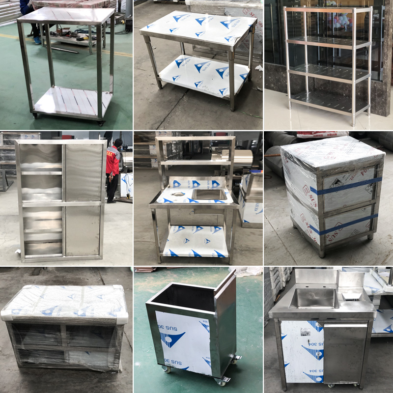 Stainless steel workbench three-layer household commercial operation table lotus table packaging table special-shaped custom-made