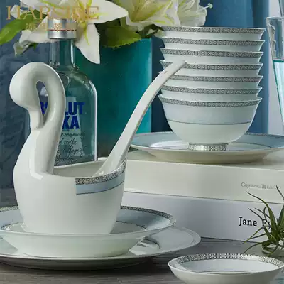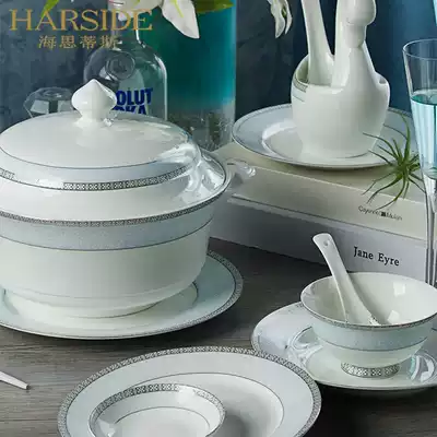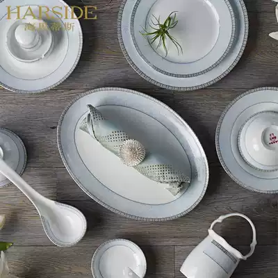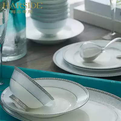 HARSIDE Chinese Bone China tableware set 56 household simple dishes set dishes chopsticks ceramics