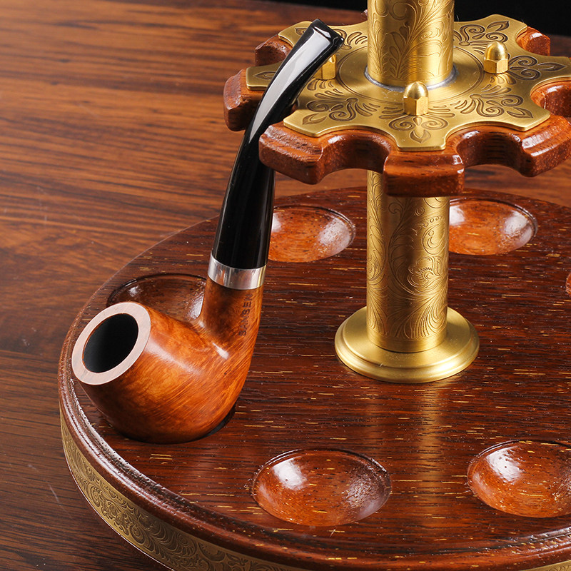 Monsoon pipe rack multi-position display bucket rack pure copper pineapple leather solid wood rotating eight-seater bucket rack accessories smoking set