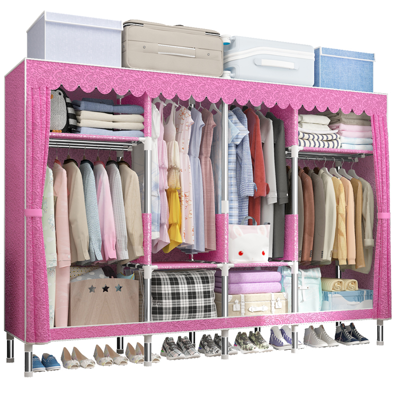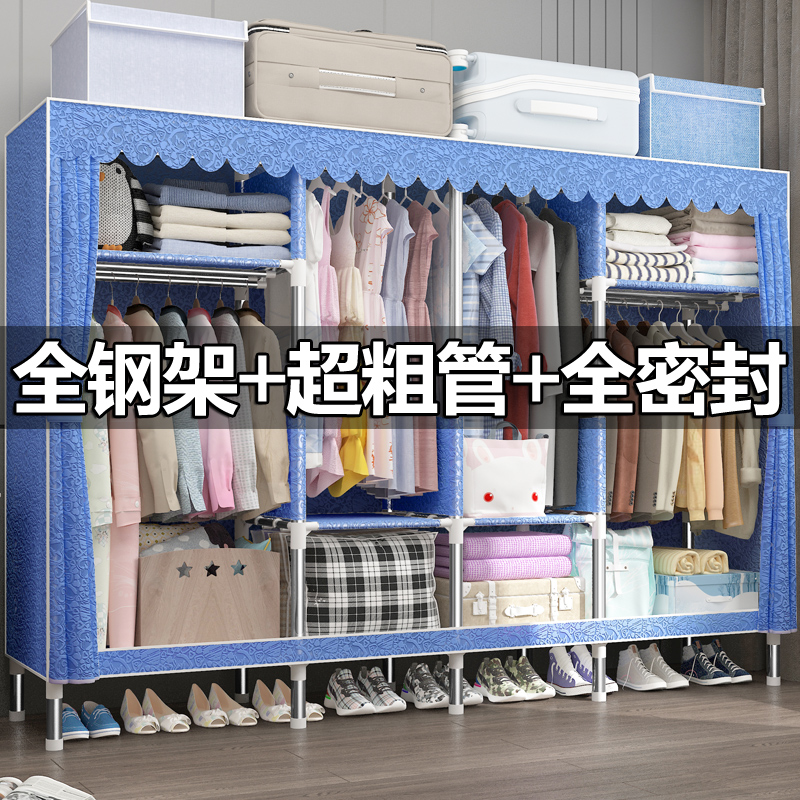 Simple cloth cabinet steel pipe reinforcement and thickness all steel frame hanging clothes household economy seal assembly cloth cabinet