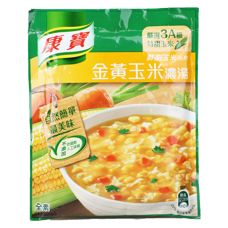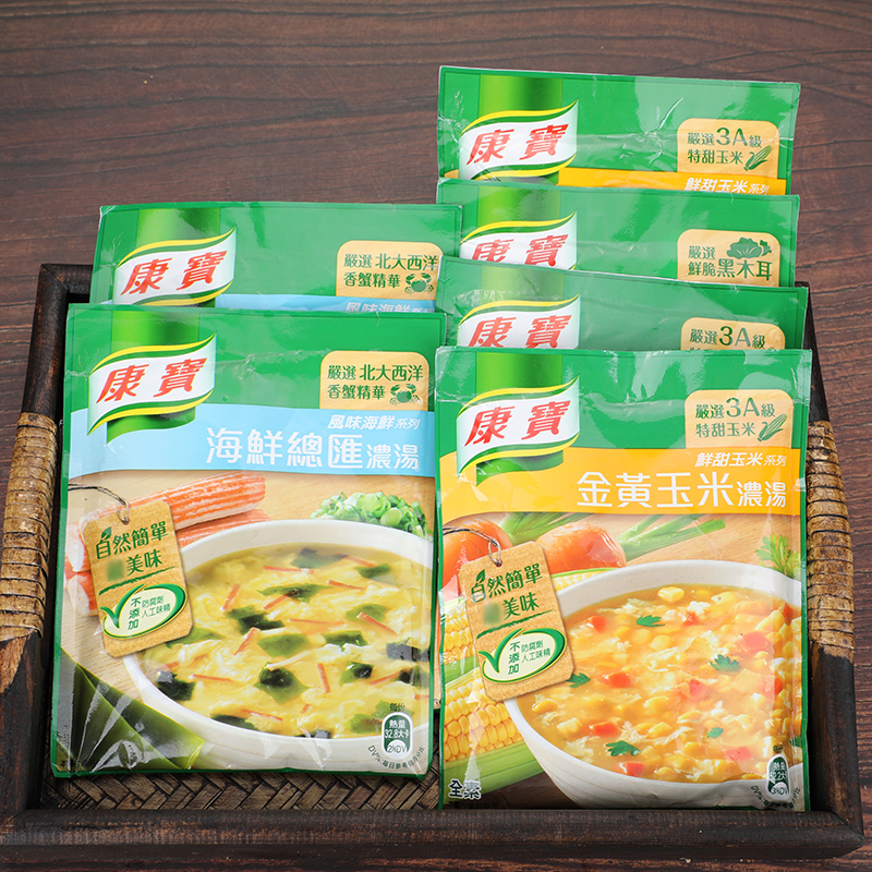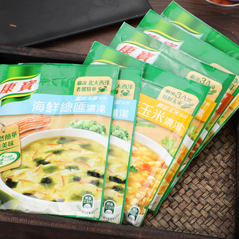 Golden Yellow Corn Thick Soup 56 3 gr Chicken Corn Thick Soup 54 1 gr Port-style Acid Hot Tonkin 46 6 gr Ham Corn Thick Soup 49 7 gr Seafood Total Sink 38 3 gr fragrant crab Pumpkin Thick