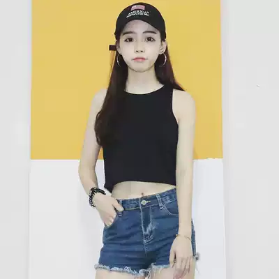 Cotton vest female bottom with Sling sexy outside summer sleeveless student black lady white short top