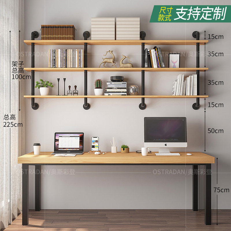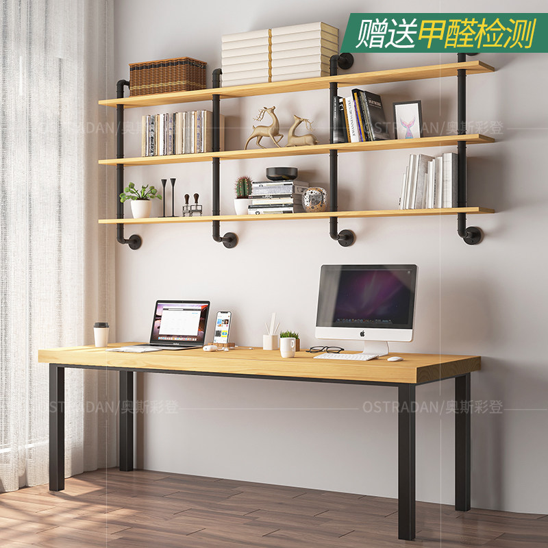 Loft solid wood double desk bookshelf combination home student study desk long table against the wall long computer desk