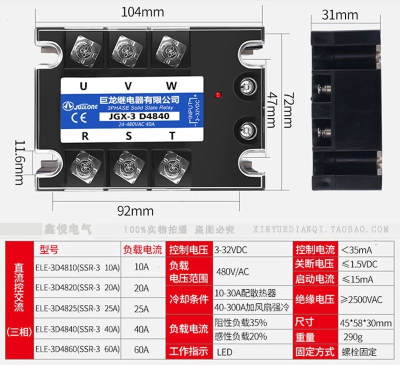 Three phase soild state relays 40A jgx-3 032 3840z JGX-3 D4840 SSR-3100A 120A