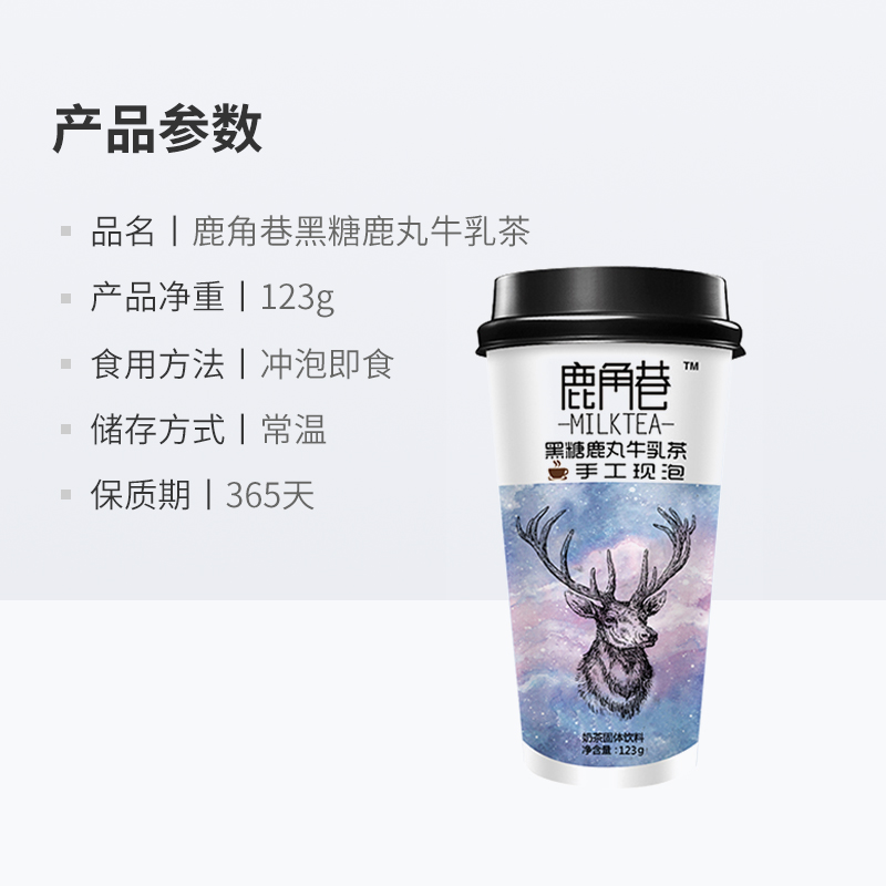 Deer Corner Alley Black Candy Deer Balls Milk Tea 123g × 1 Cup Handmade Instant Meal Online Red Afternoon Tea Milk Tea