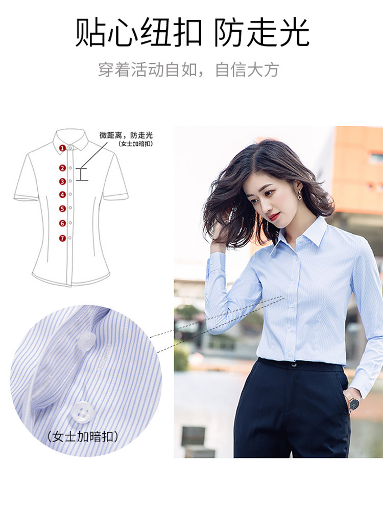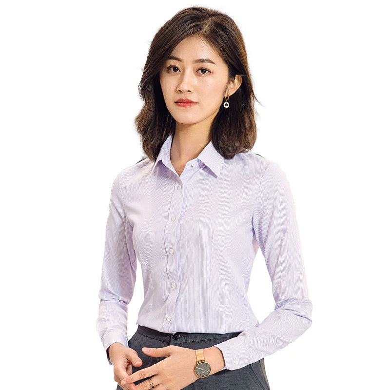 Blue and white vertical pinstripe shirt women's long-sleeved professional work clothes iron-free shirt business dress insurance interview inch shirt