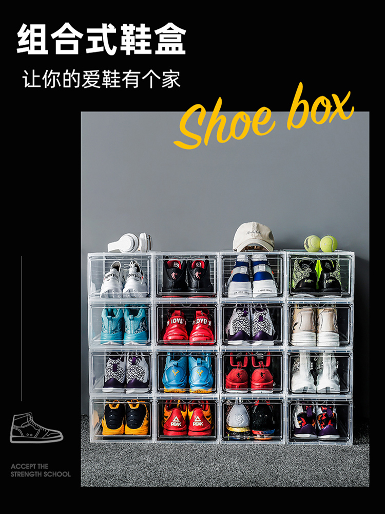 Shoe box storage box transparent shoes plastic sneakers shoe cabinet basketball car collection storage aj dust-proof moisture-proof magnetic suction