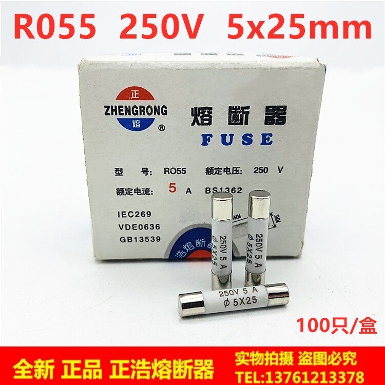 R055 RO55 Zhenghao fuse 5*25mm ceramic fuse tube 25A 20A 16A 15A 13A 10A